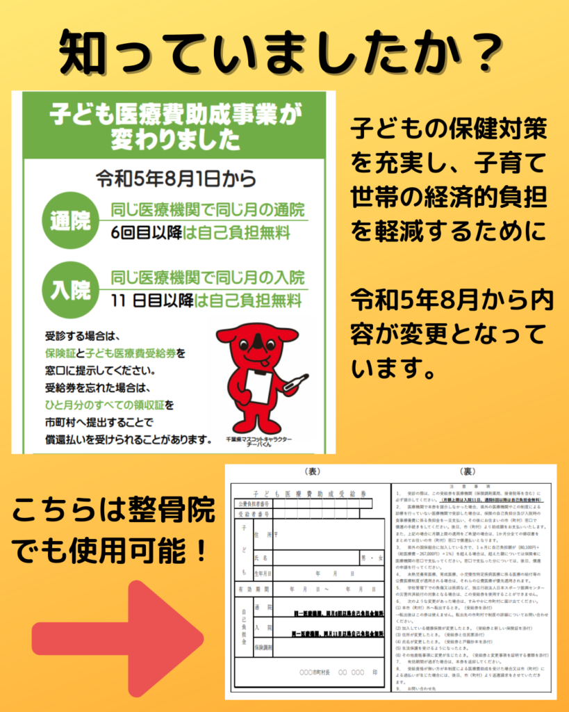 - 子供医療助成受給券が使えます!-八千代市の整骨院・整体 (2025年8月1日)
